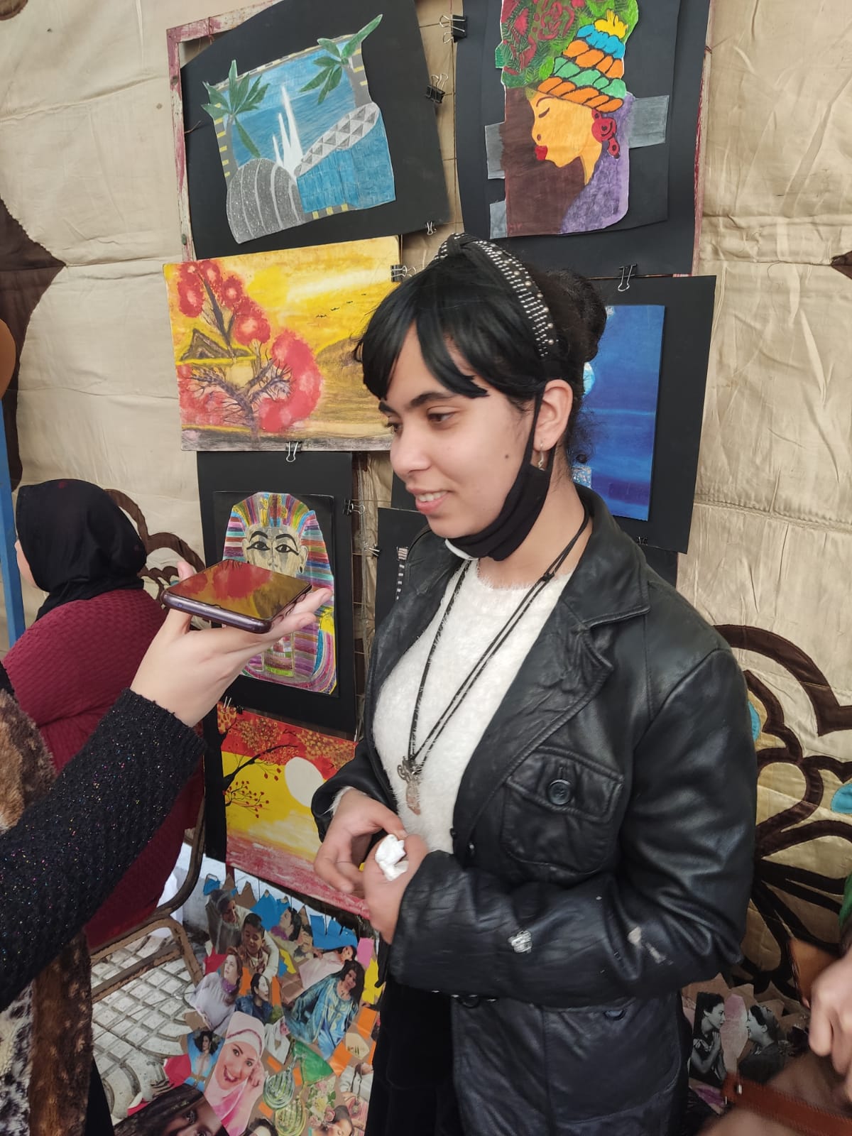 كما تواصلنا مع الطالبة «روان السيد» من ذوي الاحتياجات الخاصة، بالصف الثالث الثانوي، حيث شاركت برسومات لمناظر طبيعية وفرعونية، ورسومات بالكولاچ باستعمال قصاصات ورقية.