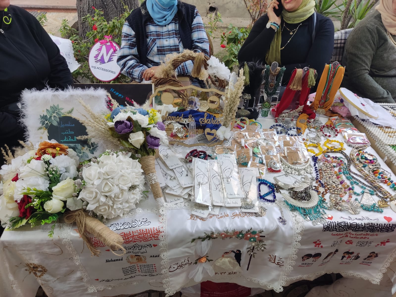 وتضمن المعرض: مشغولات يدوية منها: «رمضانية، ونوبية، وتريكو، وإكسسوارات، وأعمال بالسيراميك»، فنون تشكيلية مختلفة منها: «صور فوتوغرافية، وبورتريه» ومأكولات جاهزة.